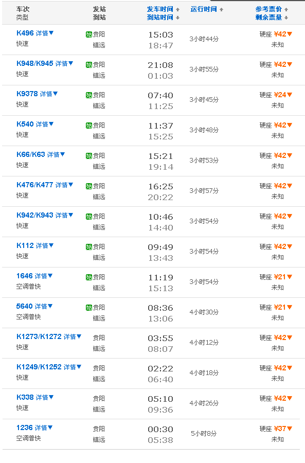 [詳細(xì)描述]貴陽到鎮(zhèn)遠(yuǎn)的火車有幾趟?